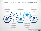 This smart Product Strategy Hexagon Timeline Template for PowerPoint helps product managers communicate major milestones and visions of their product development process. This professional designer diagram will also help the internal team understand how releases help with the overall business strategy and drive the product to success.